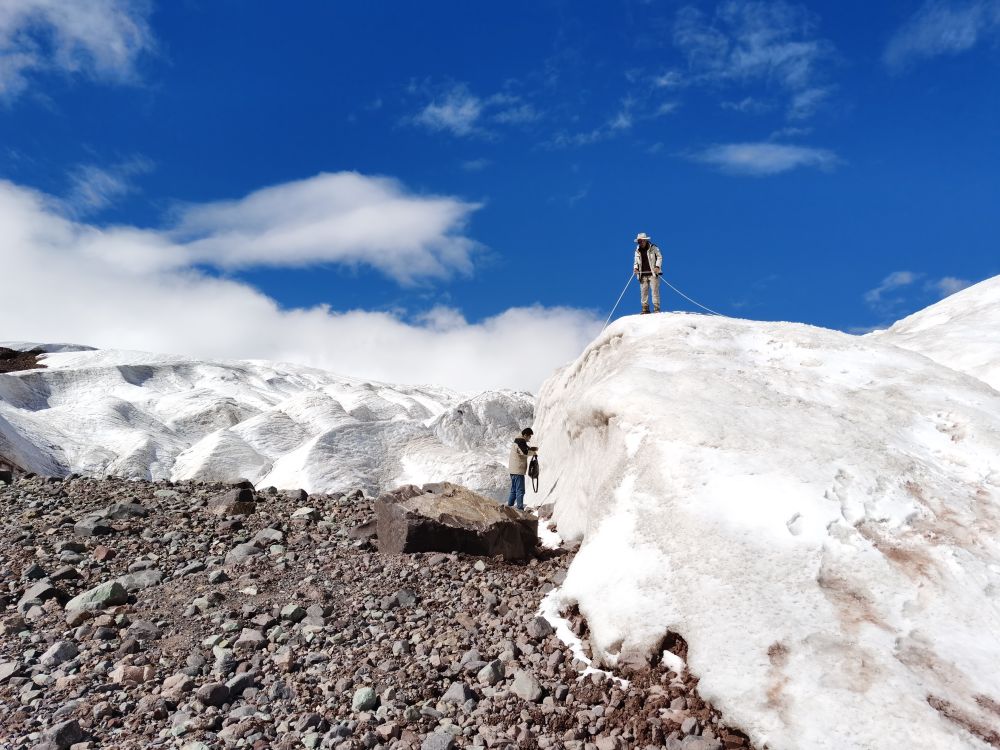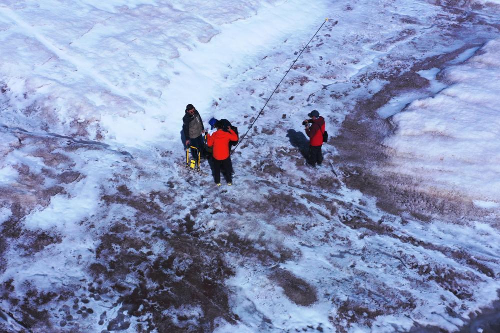 “這是我們第二次登上格拉丹東雪山主峰冰川,在去年測量的區(qū)域開展了4條測量線的雷達(dá)探測?!倍跨f,去年測量區(qū)域冰川平均厚度約12米,此次探測結(jié)果可用來比較冰川的厚薄變化,為計(jì)算冰儲量積累數(shù)據(jù)。
