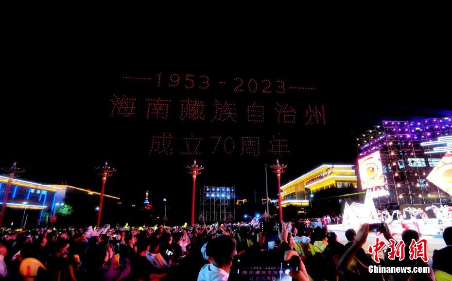 慶祝青海海南州成立70周年 無人機(jī)秀點亮高原夜空
