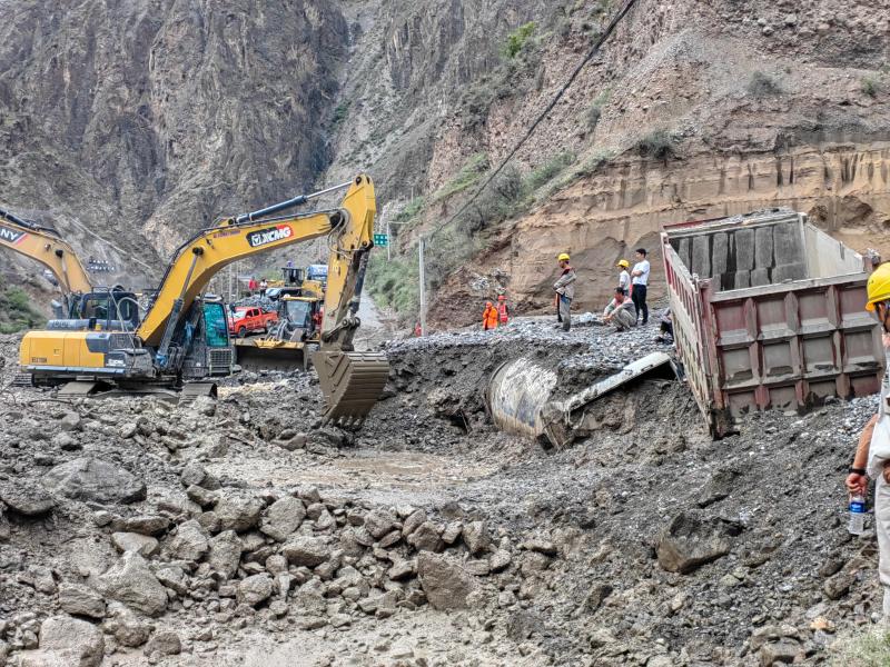近日,受持續(xù)強(qiáng)降雨影響,G214線佛山鄉(xiāng)古水村附近K1911+750處發(fā)生泥石流災(zāi)害,造成交通中斷。德欽公路分局立即啟動汛期保通應(yīng)急預(yù)案,第一時(shí)間組織應(yīng)急搶險(xiǎn)人員趕赴現(xiàn)場,4臺裝載機(jī)、2臺挖掘機(jī)、4臺運(yùn)輸車全力投入搶通工作中,并協(xié)同交警實(shí)行交通管制,疏散滯留車輛。經(jīng)過多部門搶險(xiǎn)保通作業(yè),受阻路段順利實(shí)現(xiàn)半幅通行。圖為現(xiàn)場正在清理鏟運(yùn)泥沙。