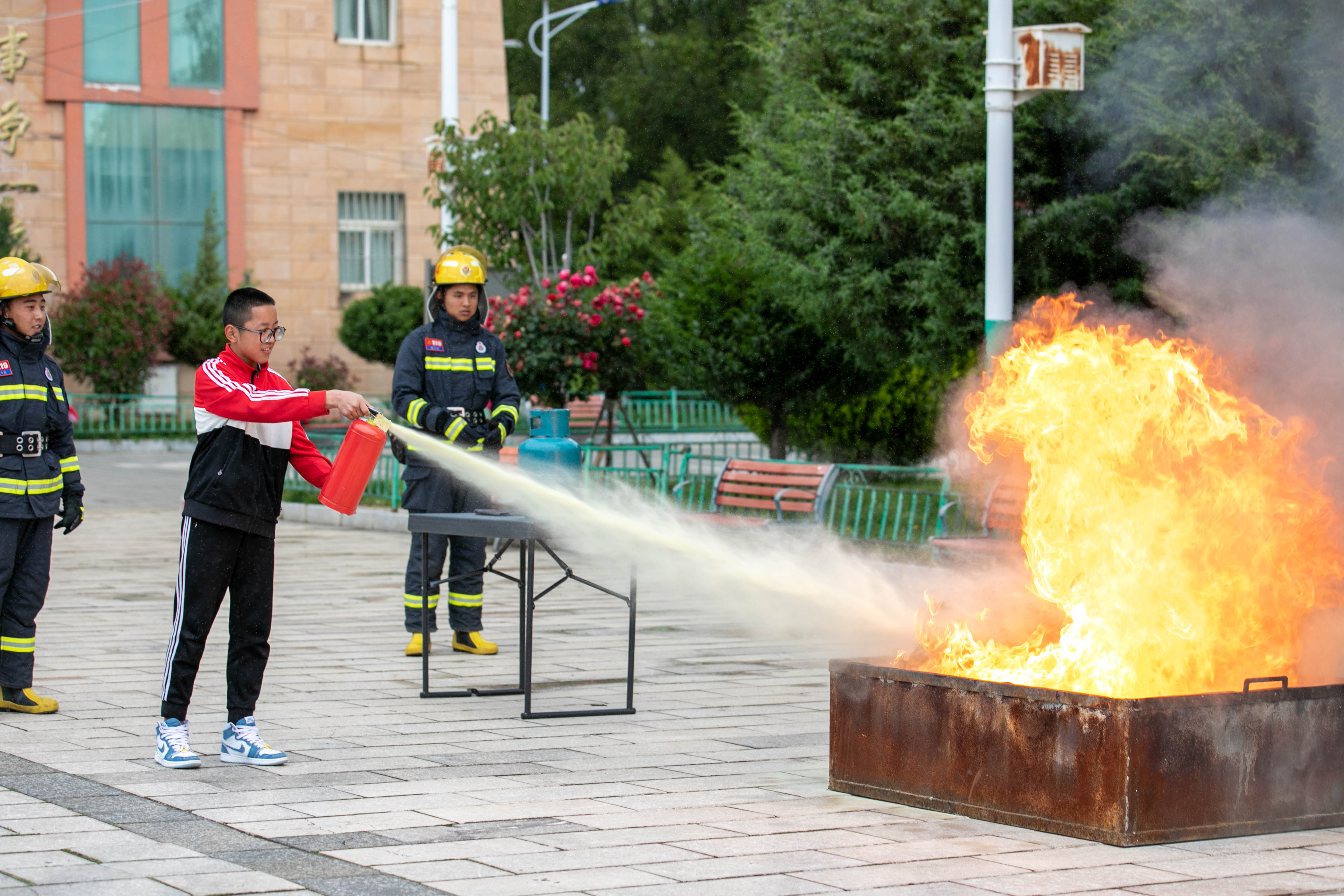 其間,支隊宣傳員還帶領(lǐng)學(xué)生們 “零距離”參觀體驗消防車輛和器材裝備,對搶險救援車、液壓破拆系統(tǒng)、手抬機動泵等消防器材裝備進行現(xiàn)場講解,讓師生了解器材裝備的用途和使用方法?;顒又羞€開展了真火撲救實操演練及應(yīng)急疏散逃生實戰(zhàn)演練。