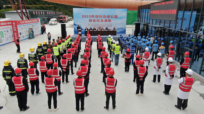 “立即組織施工人員進行疏散和警戒,人員不得盲目進洞施救……”9月1日,一場隧道坍塌事故綜合應急演練在G4218康定至新都橋高速公路項目康定隧道建設工地舉行。演練模擬隧道施工時突發(fā)坍塌、工人被困,搶險人員在指定時間內趕赴事故現場,實施應急救援處置。
