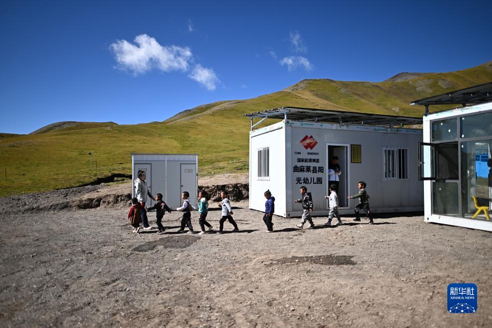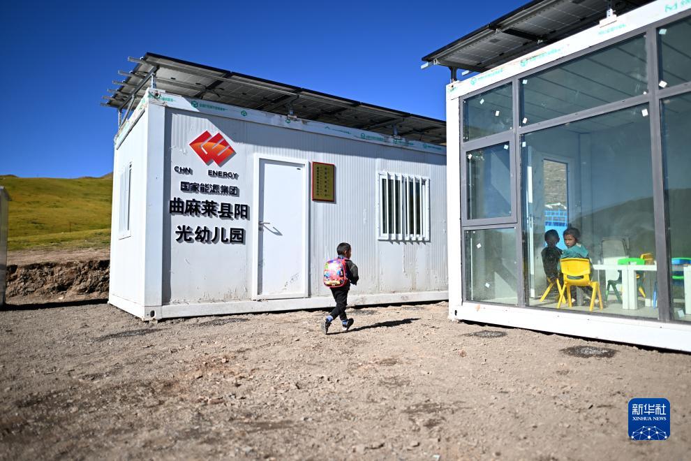 作為曲麻萊縣定點(diǎn)幫扶單位,國(guó)家能源集團(tuán)自2022年起累計(jì)投入1350萬(wàn)元,在曲麻萊縣建設(shè)15所陽(yáng)光幼兒園。陽(yáng)光幼兒園為集裝箱式房屋,配備屋頂離網(wǎng)儲(chǔ)能光伏系統(tǒng),可以滿足供暖、照明等需求。幼兒園招收居住在周邊牧場(chǎng)的兒童,讓孩子們?cè)陔x家不遠(yuǎn)處就能接受學(xué)前教育。