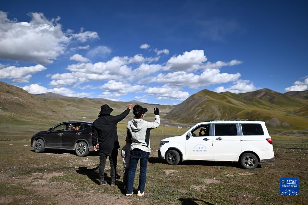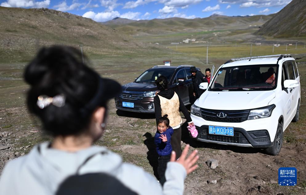 在青海省玉樹(shù)藏族自治州曲麻萊縣秋智鄉(xiāng)布甫村陽(yáng)光幼兒園,老師與學(xué)生家長(zhǎng)告別(9月14日攝)。新華社記者 張宏祥 攝