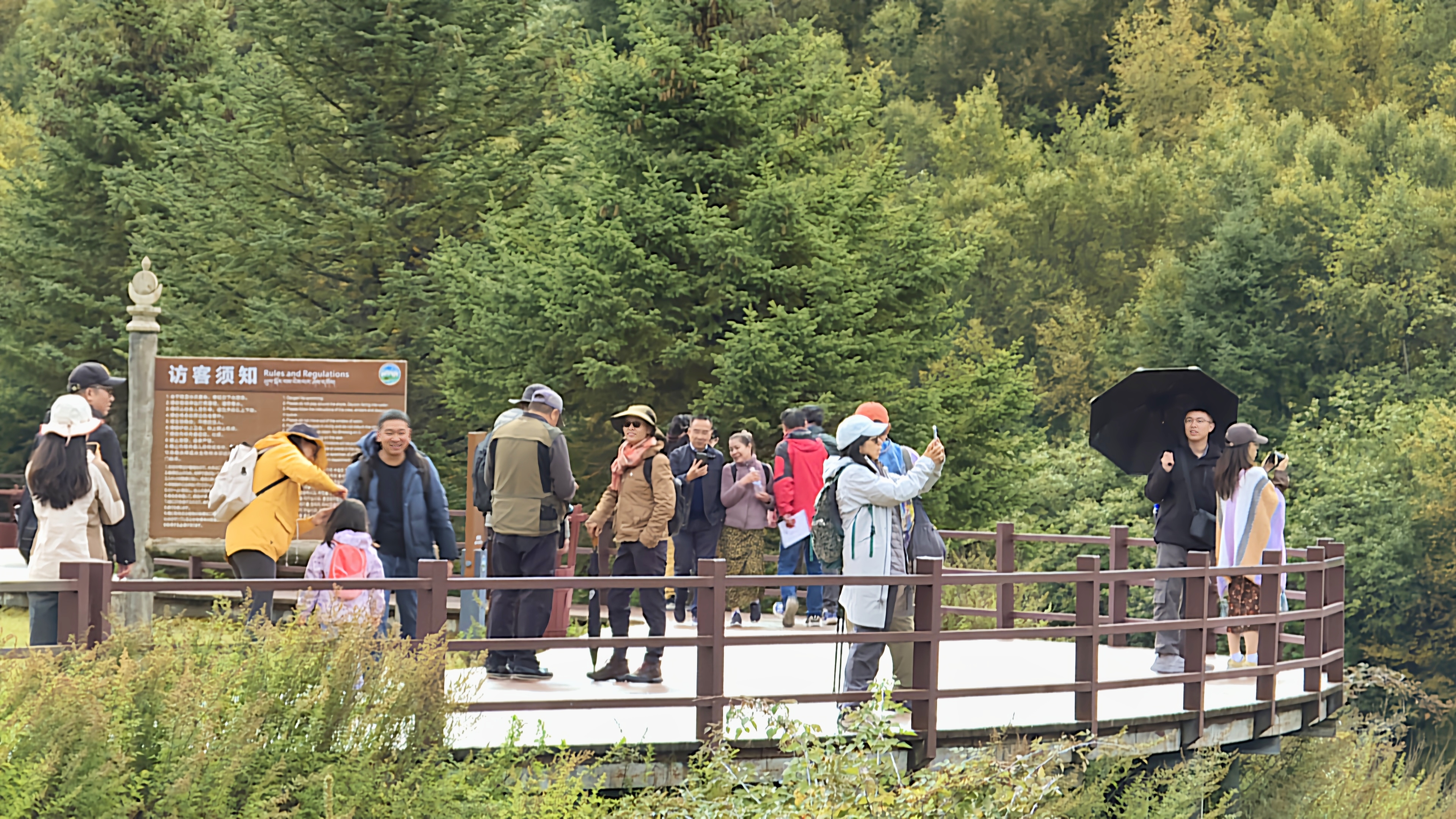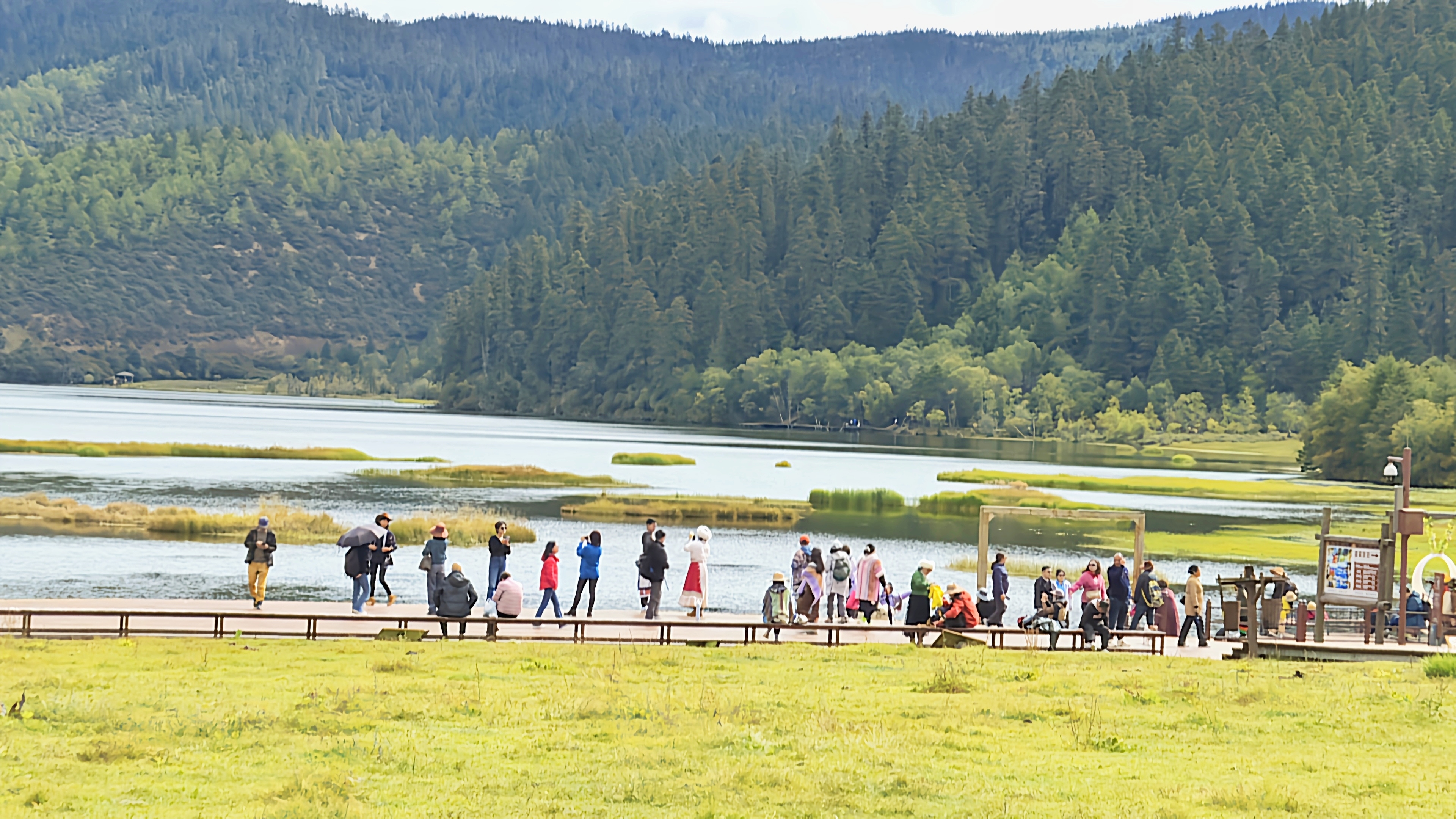 秋日的普達(dá)措國家公園層林盡染、色彩斑斕,高山草甸、原始森林與湖泊濕地構(gòu)成了一幅幅美麗的畫卷,屬都湖棧道上人群熙熙攘攘。“我是第一次來香格里拉旅游,香格里拉給我的感覺就是,這里的生態(tài)環(huán)境保護(hù)得很好,綠水青山,很值得來游玩。”游客宋女士表示。