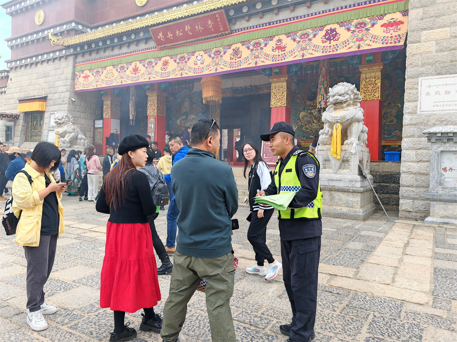 10月1日起,香格里拉市公安局直屬城市交警大隊(duì)組織民輔警走進(jìn)松贊林寺景區(qū)、納帕海景區(qū)開展交通安全宣傳活動(dòng),加強(qiáng)景點(diǎn)路面管控,確保國慶期間景區(qū)道路安全、有序、暢通。