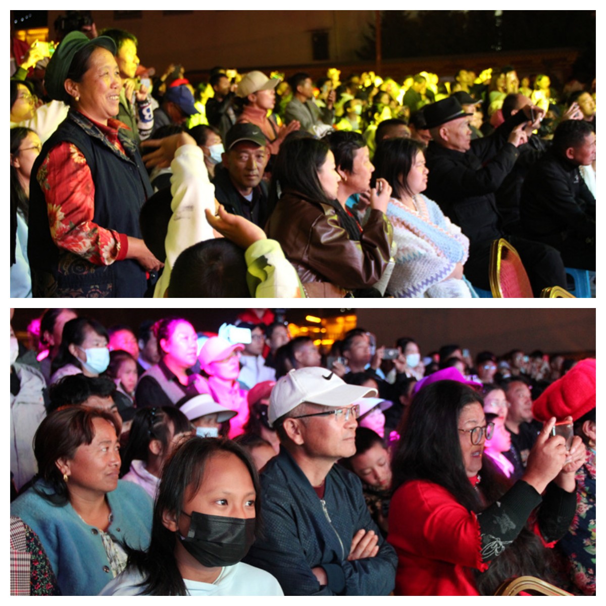 閉幕式現(xiàn)場(chǎng),優(yōu)秀民間歌手們?cè)俅潍I(xiàn)上動(dòng)人的歌曲,為現(xiàn)場(chǎng)觀眾帶來(lái)一場(chǎng)古樸、莊重的視聽(tīng)盛宴?!渡焦鹊幕芈暋贰端筛駩赌贰贰赌徇t目刮》……悠揚(yáng)的歌聲又一次響徹在獨(dú)克宗古城的夜空,現(xiàn)場(chǎng)觀眾也紛紛參與合唱,將現(xiàn)場(chǎng)氣氛推至高潮。最后,活動(dòng)在合唱《我和我的祖國(guó)》中完美落幕。