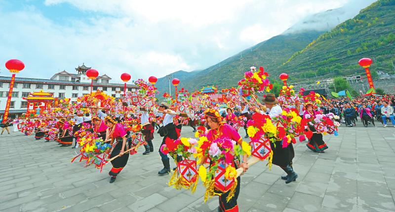 松潘的花燈舞,是松潘各民族大團結、和諧相處、共同繁榮的載體,也是民間文娛生活豐富的表現(xiàn)形式。澤讓闥 攝