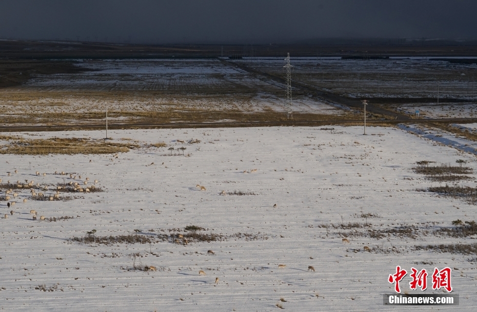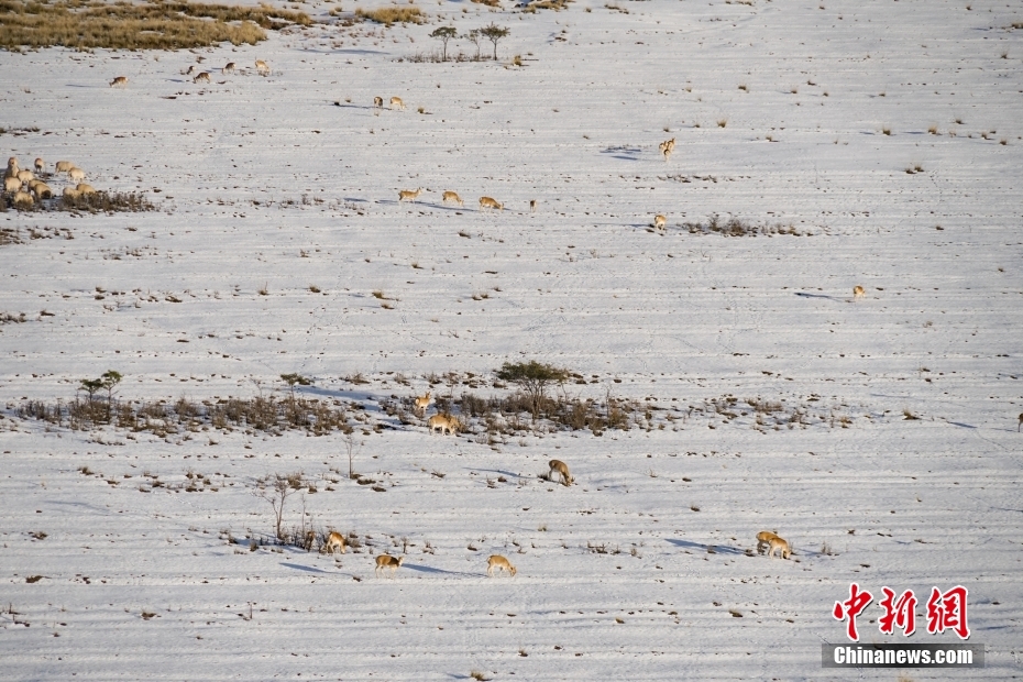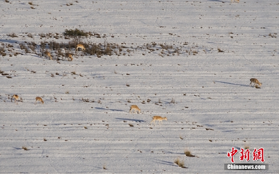 10月12日,成群普氏原羚在青海湖北岸雪中覓食、漫步。當(dāng)日,在青海湖北岸的青海省海北藏族自治州剛察縣哈爾蓋“羚羊小鎮(zhèn)”,成群的普氏原羚在雪中覓食、漫步。普氏原羚是世界瀕危物種、國家一級(jí)重點(diǎn)保護(hù)野生動(dòng)物,現(xiàn)僅分布于青海湖周圍,成為青海湖獨(dú)有的珍稀有蹄類動(dòng)物和旗艦物種。中新社記者 馬銘言 攝