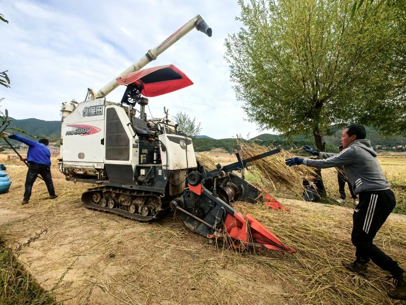 眼下,正是稻谷成熟收獲的時(shí)候。在維西縣攀天閣鄉(xiāng)安一村的稻田里,一穗穗黑谷將土地染得一片金黃,豐收的喜悅撲面而來。人與機(jī)器齊上陣,現(xiàn)場呈現(xiàn)一派繁忙熱鬧的景象。