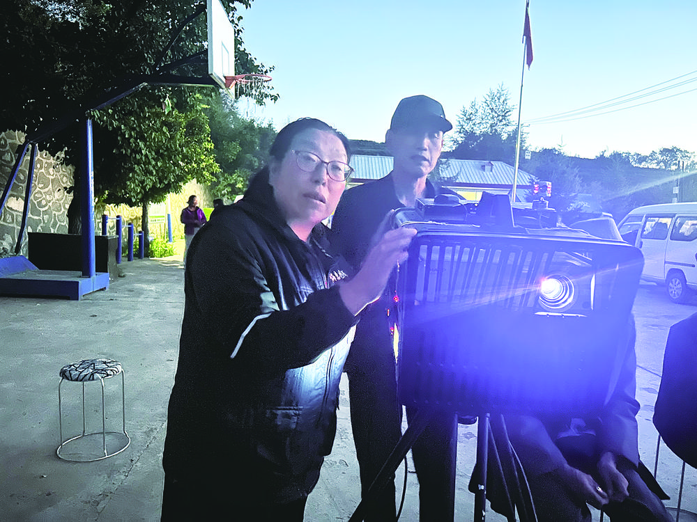 說起不同于其他縣區(qū)的集中放映模式,黃得梅說:“樂都區(qū)大部分地區(qū)地廣人稀、村與村的距離遠,獨自放映‘工程大’,隊上還有6個女放映員,路難走不說,安全也是個問題。所以我提議采取集中放映的方式,這樣可以相互照應(yīng),也能高效完成放映任務(wù)。每次選擇一個鄉(xiāng)鎮(zhèn),再把大家分散到各村。這種形式實行后效果很好,所以就沿用到了現(xiàn)在?!?/p>