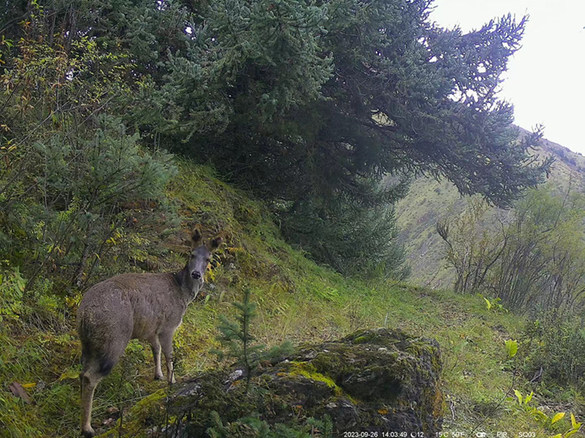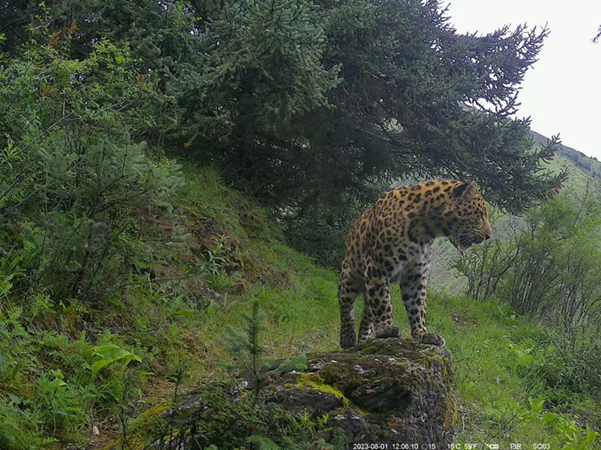 紅外相機(jī)影像資料顯示,一只金錢豹正走到石頭上眺望,一只棕熊媽媽正帶著幼崽經(jīng)過(guò),一群白唇鹿在紅外相機(jī)前悠閑好奇的觀望……從肉食性、雜食性到植食性,野生動(dòng)物們?cè)阽R頭里的不時(shí)亮相,一定程度證明保護(hù)區(qū)內(nèi)生態(tài)系統(tǒng)功能健康,食物鏈結(jié)構(gòu)完整。