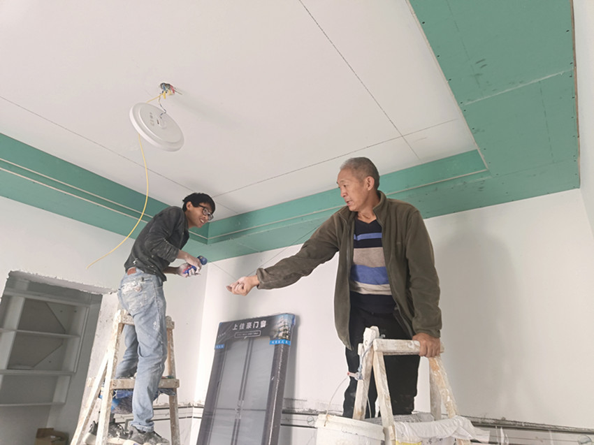 村民王福玉的房子也是一套175平方米的大房間。室內(nèi)堆滿了砂石,工人們正在抓緊裝修?!拔掖蛩阌靡粋€(gè)月的時(shí)間完成裝修,準(zhǔn)備在春節(jié)前搬新家?!蓖醺S裥判臐M滿地說(shuō),“我和老公都會(huì)泥水匠,今年我們就在安置點(diǎn)建設(shè)工地務(wù)工,每天的工資有320元,目前收入合計(jì)有十五六萬(wàn)元?!?/p>