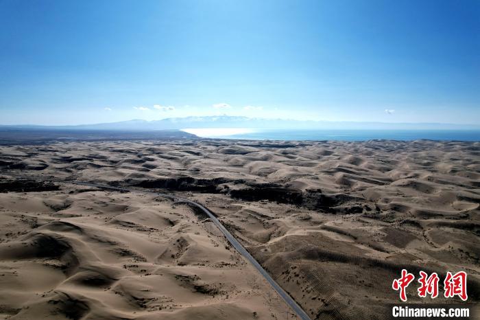 11月11日,記者驅(qū)車來到青海省海北藏族自治州海晏縣金沙灣,連綿沙丘與蔚藍(lán)湖水相接景色優(yōu)美。金沙灣北距海北藏族自治州首府西海鎮(zhèn)約25公里、西距青海湖約2公里,以觀看金色的沙漠風(fēng)光為主要特色。
