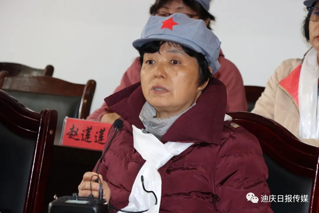 甘祖昌之女甘仁榮回憶起父親,眼中噙滿淚水。其父親甘祖昌,中國人民解放軍少將軍銜,被稱為“將軍農(nóng)民”。1926年參加村農(nóng)民協(xié)會,1927年加入中國共產(chǎn)黨,翌年參加中國工農(nóng)紅軍。在革命生涯中,歷任湘贛軍區(qū)紅軍兵工廠副科長、八路軍第三五九旅供給部軍需科科長、三五九旅供給部副部長、晉綏軍區(qū)三五九旅供給部部長、西北野戰(zhàn)軍第二縱隊后勤部部長、第一野戰(zhàn)軍二軍后勤部部長等職。先后參加了國內(nèi)革命戰(zhàn)爭、抗日戰(zhàn)爭、解放戰(zhàn)爭,為了黨和人民的事業(yè)出生入死、數(shù)次負(fù)傷 。中華人民共和國成立后,甘祖昌歷任新疆軍區(qū)后勤部副部長兼供給處處長,兼財務(wù)處處長,新疆軍區(qū)后勤部部長。1955年被授予少將軍銜,榮獲八一勛章、獨(dú)立自由勛章、解放勛章等 。1957年,甘祖昌在辭去新疆軍區(qū)后勤部部長的職務(wù)后,帶著家人回到闊別20多年的家鄉(xiāng),從此開始了29年的“農(nóng)民生涯”。從江西到延安再到新疆,甘祖昌將人生中三分之二的時光都奉獻(xiàn)給了國家獨(dú)立和民族解放的革命斗爭中。其母親龔全珍是開國少將甘祖昌夫人、江西省萍鄉(xiāng)市南陂小學(xué)原校長。1957年8月,龔全珍隨丈夫甘祖昌回家鄉(xiāng)江西省蓮花縣務(wù)農(nóng)并一直從事鄉(xiāng)村教師工作。離休后,又扶貧助學(xué),開辦“龔全珍工作室”服務(wù)社區(qū)、群眾。著有紀(jì)實(shí)作品《我和老伴甘祖昌》。習(xí)近平總書記先后兩次親切接見龔全珍,親切地稱她為“老阿姨”。龔全珍曾榮獲第四屆全國道德模范稱號、“感動中國”2013年度十大人物 、全國優(yōu)秀共產(chǎn)黨員 、“感動江西十大教育年度人物”“全國模范退役軍人”等稱號。甘仁榮在座談會上談及父母從小對子女嚴(yán)苛的家教,從飯桌上絕不能浪費(fèi)一粒糧的教育再到了父母離開城市回農(nóng)村搞建設(shè)的過往,從幼兒的少不更事,到如今自己親身來到迪慶,感受父輩走過的路,真切地體會到了父輩身上不畏艱險、堅韌不拔、頑強(qiáng)拼搏、攻堅克難的奮斗精神和為黨和人民的事業(yè)“鞠躬盡瘁、死而后已”的偉大獻(xiàn)身精神?,F(xiàn)場氣氛莊嚴(yán)肅穆,令人感動。
