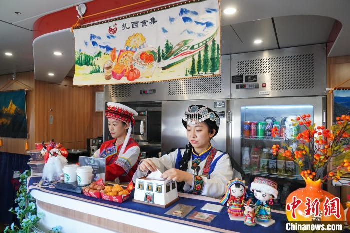11月26日,麗江至香格里拉鐵路正式建成通車。圖為列車上的餐吧。中新社記者 劉冉陽 攝