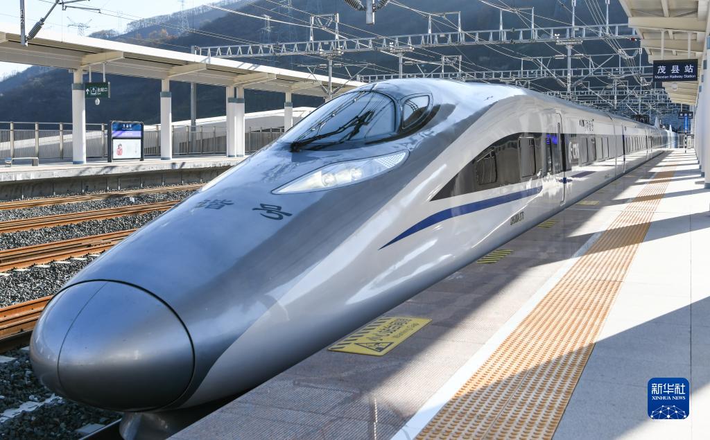 11月28日,C6008次首發(fā)列車駛?cè)氪ㄇ噼F路茂縣站。新華社記者 王曦 攝
