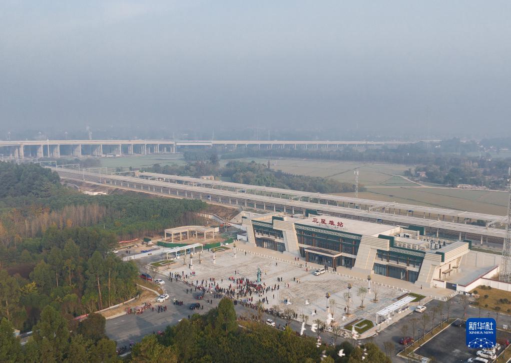 11月28日,俯瞰川青鐵路三星堆站(無人機(jī)照片)。新華社記者 江宏景 攝