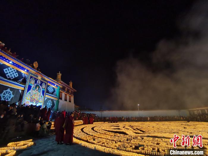 線下燃燈+云供燈 青海藏傳佛教格魯派寺院迎燃燈日