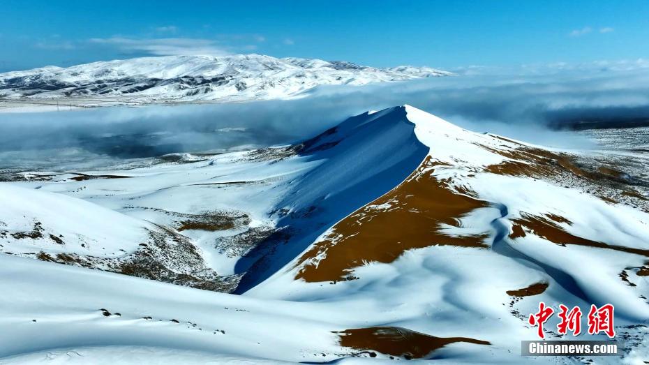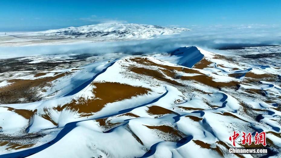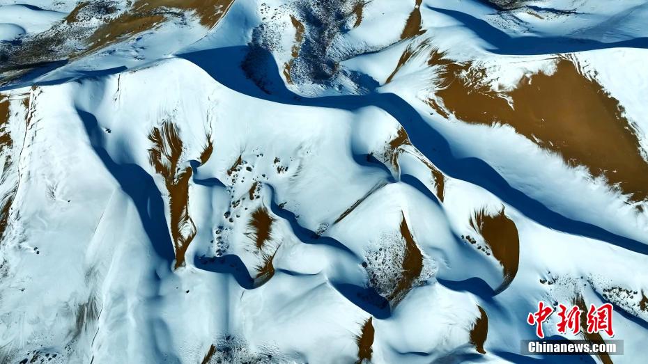 12月中旬,高原青海迎來新一輪寒潮。在青海湖北岸的青海省海北藏族自治州海晏縣,攝影師在金沙灣拍攝到雪落金沙的冬日景色。航拍鏡頭下沙與雪的色彩明暗交錯、波瀾起伏,宛如大自然為大地“咖啡”“拉花”,藍白交織的純凈讓人心曠神怡。雪后初晴,云河在沙丘間流動,時而隨著氣流“流入”青海湖,沙丘背后的蔚藍湖水,也讓景色變得奇幻優(yōu)美。青海湖是中國最大的內(nèi)陸高原咸水湖,是維系青藏高原東北部生態(tài)安全的重要水體,也是控制西部荒漠化向東蔓延的天然屏障。