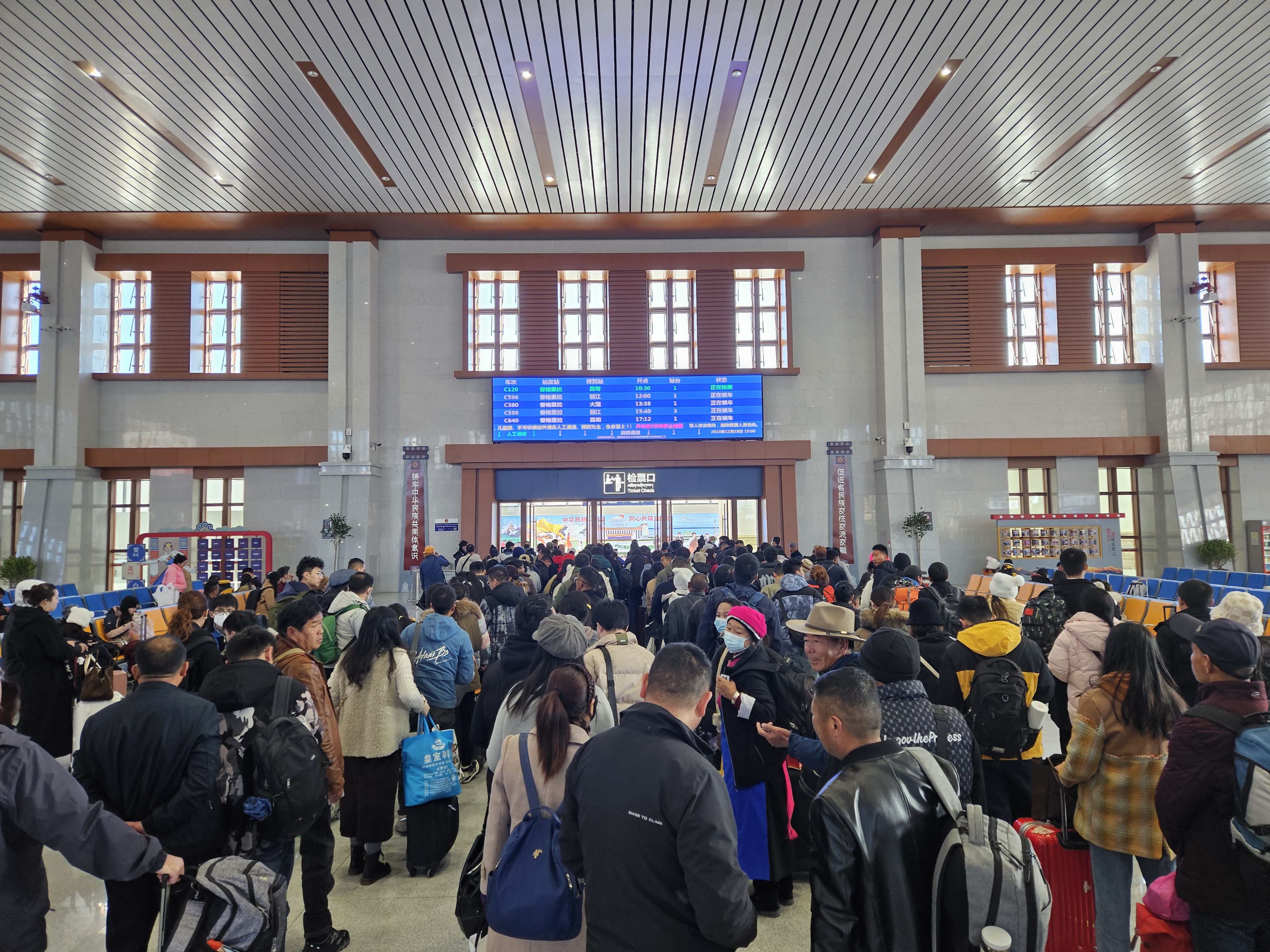 香格里拉站客運(yùn)員黃浩芯告訴記者,近期香格里拉站客流量維持在發(fā)送2200人左右,到達(dá)2100人左右,上座率平均在60%,客票比較充足,廣大旅客可以通過鐵路12306的網(wǎng)站、手機(jī)APP代售點(diǎn)、售票窗口以及自助售票機(jī)進(jìn)行購票。針對(duì)香格里拉站客流持續(xù)上升情況,香格里拉站在安檢方面,由原來的六個(gè)人增派到八個(gè)人,售票窗口由原來的一個(gè)窗口增加至兩個(gè)窗口,同時(shí),每天會(huì)安排一些預(yù)備人員提供服務(wù),全力保障旅客的出行,讓旅客有更好的乘車體驗(yàn)。