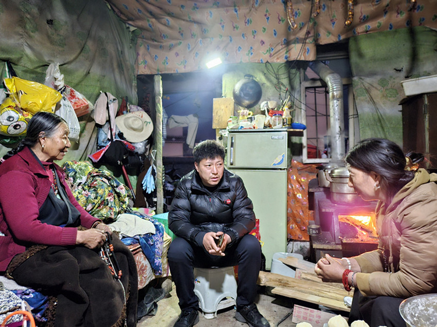 圖為澤翁曲珠深入群眾家中了解生產(chǎn)生活情況。