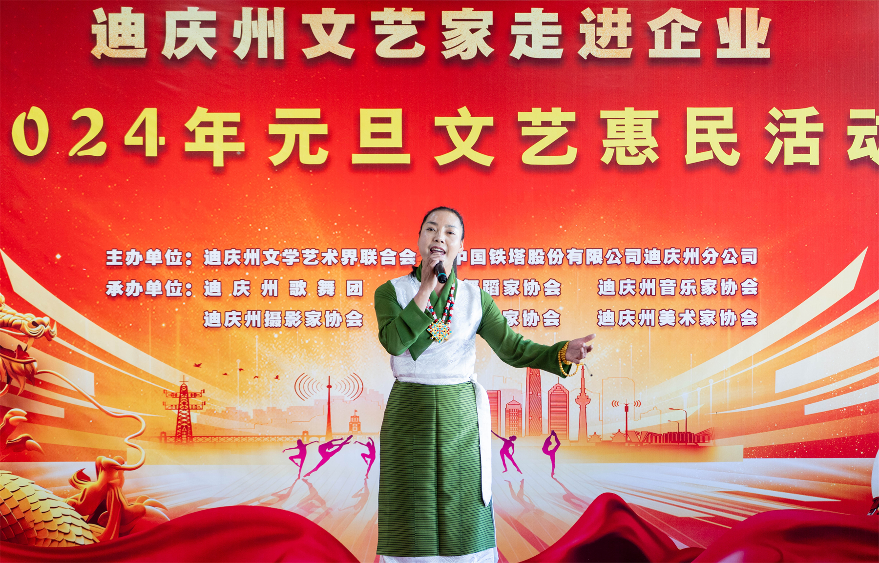 12月27日,迪慶州文聯(lián)組織文藝家走進(jìn)中國(guó)鐵塔股份有限公司迪慶州分公司開(kāi)展2024年元旦文藝惠民活動(dòng)。