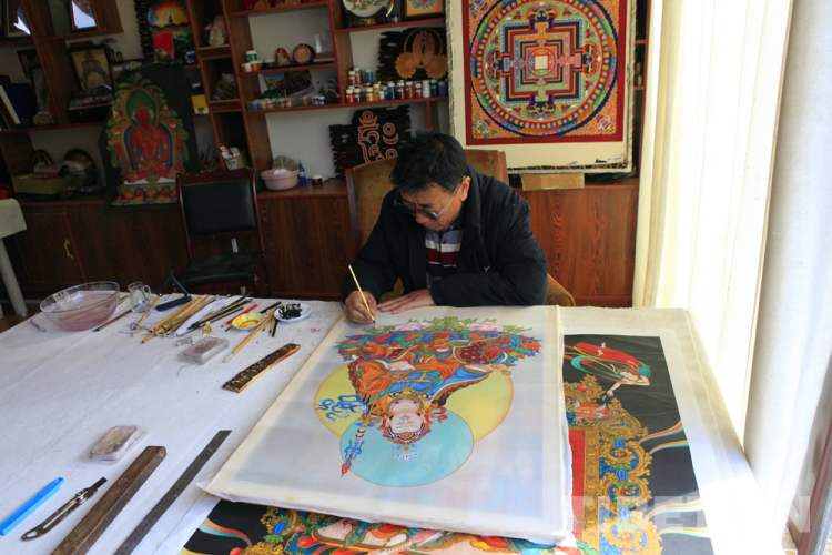 圖為呷瓦畫師作畫