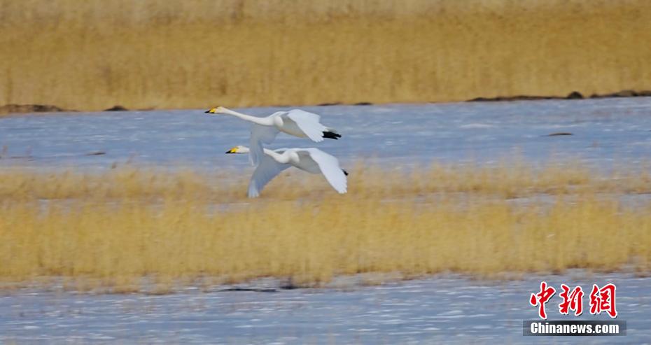 上百只天鵝飛抵柴達(dá)木盆地可魯克湖越冬