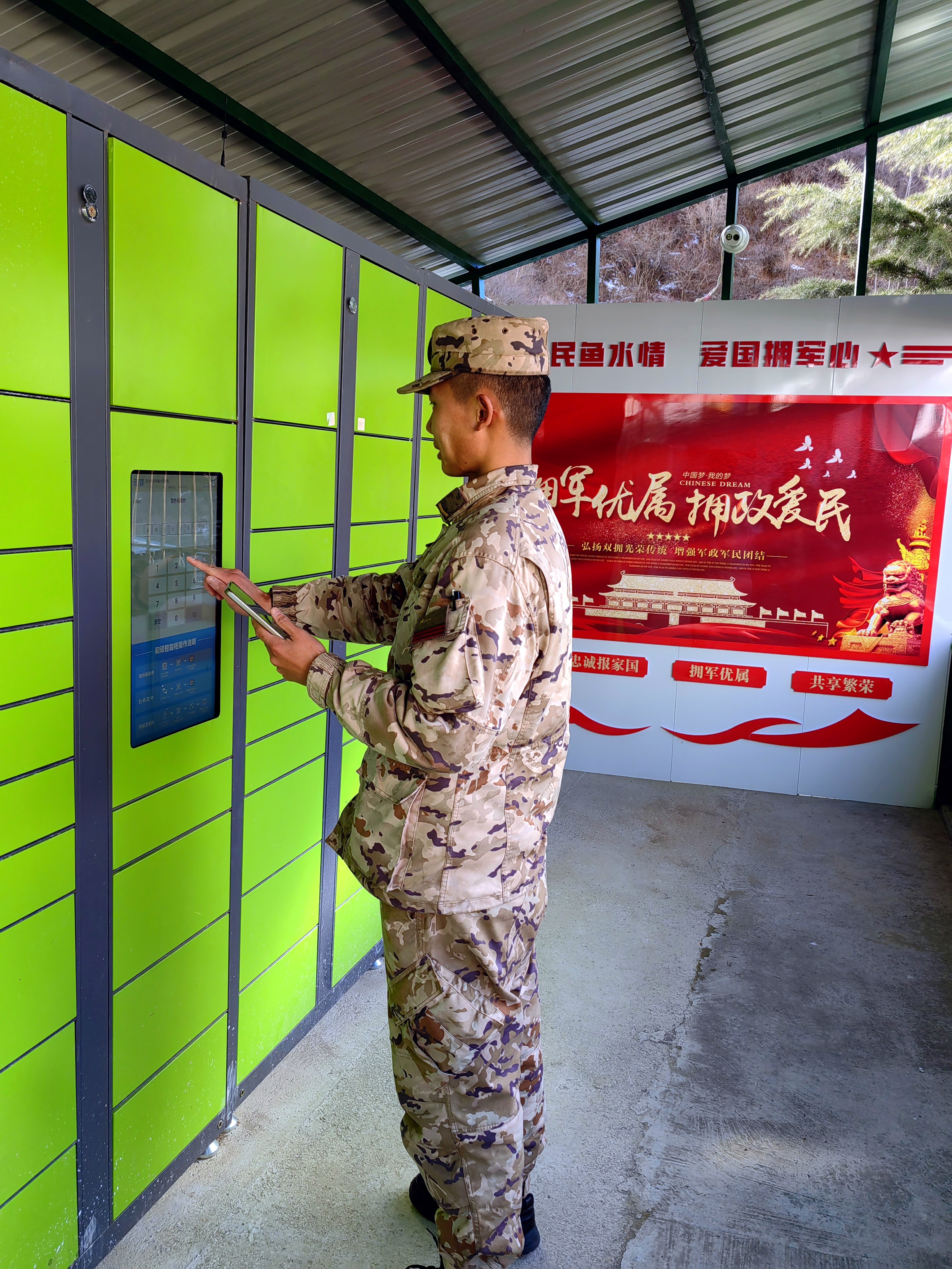 由于武警德欽中隊(duì)駐地距離德欽縣城快遞站較遠(yuǎn),收發(fā)快遞成為部隊(duì)官兵的一大難題,德欽縣愛心企業(yè)喀輿貢囧速遞有限責(zé)任公司了解到情況后,主動聯(lián)系德欽縣雙擁辦,積極伸出援助之手,為擁軍暖心驛站免費(fèi)贈送一組智能快遞柜,及時(shí)將快遞配送至擁軍暖心驛站。如今,部隊(duì)官兵只需通過手機(jī)掃描快遞柜的二維碼便可自主領(lǐng)取快遞,這一援助之舉實(shí)實(shí)在在為駐地官兵解決了收發(fā)快遞難題。