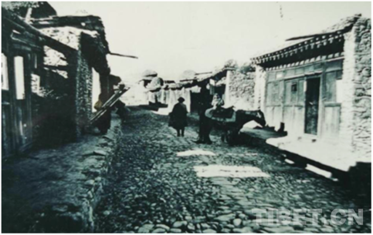 圖為20世紀(jì)30年代的泰寧鎮(zhèn)街村,屋頂上的青稞垛格外顯眼