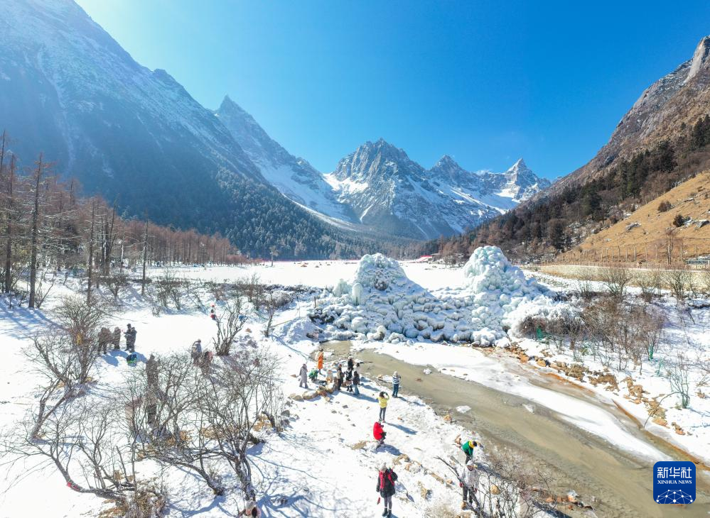 1月25日,游客在畢棚溝風(fēng)景區(qū)觀光(無人機(jī)照片)。新華社記者 王曦 攝