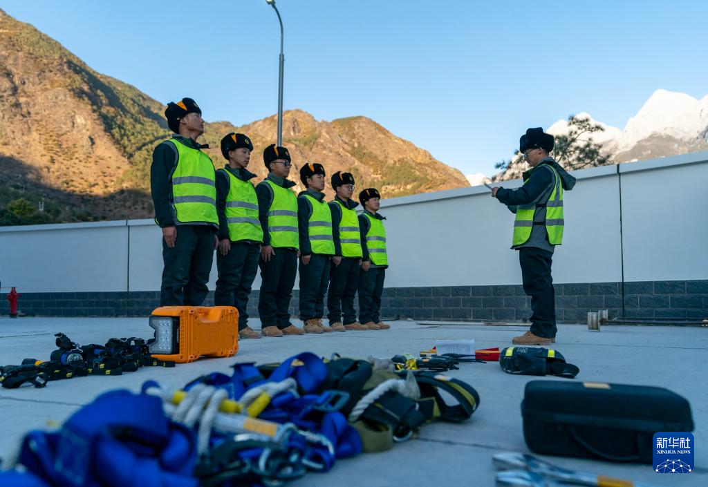 1月24日,工區(qū)班長楊應(yīng)文(右一)在清點(diǎn)人數(shù)并強(qiáng)調(diào)注意事項(xiàng)。新華社記者 陳欣波 攝