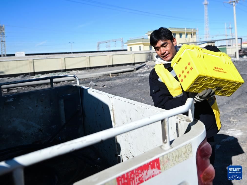 1月29日,格爾木電務(wù)段格爾木東信號(hào)車(chē)間察爾汗信號(hào)工區(qū)職工普布旦增將工具箱裝車(chē)準(zhǔn)備前往區(qū)間進(jìn)行作業(yè)。新華社記者 張龍 攝