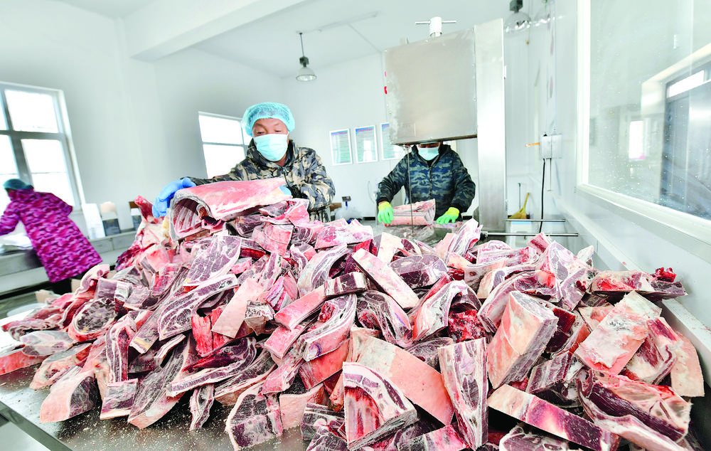 1月24日,記者走進(jìn)青海省海西蒙古族藏族自治州格爾木市唐古拉山鎮(zhèn)長江源村的唐古拉牦牛、藏羊精深加工基地,車間內(nèi)屠宰、冷凍、包裝等功能區(qū)劃分明確,一應(yīng)俱全。忙碌的生產(chǎn)線上,身穿食品加工工作服的工作人員正沿著流水線緊張有序地工作。剔骨、粗分完成后,工作人員再按不同部位精準(zhǔn)分割、整齊打包,等待銷售發(fā)貨,全力保障年貨產(chǎn)品的市場供應(yīng)。長江源村駐村第一書記梁亮告訴記者:“臨近春節(jié),牛羊肉禮盒備受青睞,浙江、江蘇、西藏等地的訂單也比平時(shí)增加了很多。牛羊肉產(chǎn)業(yè)鏈的延伸,成為了我們長江源村鄉(xiāng)村振興的又一把‘金鑰匙’?!?/p>