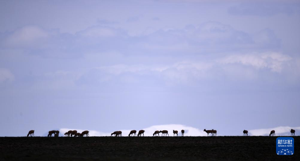 2023年7月27日,一群藏羚羊在可可西里境內活動。新華社記者 張宏祥 攝