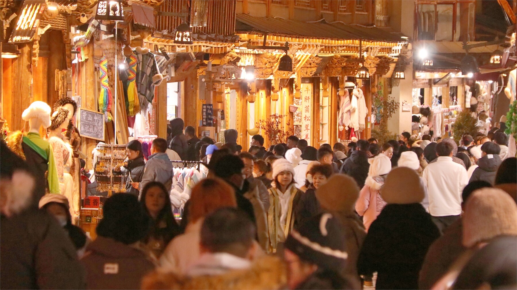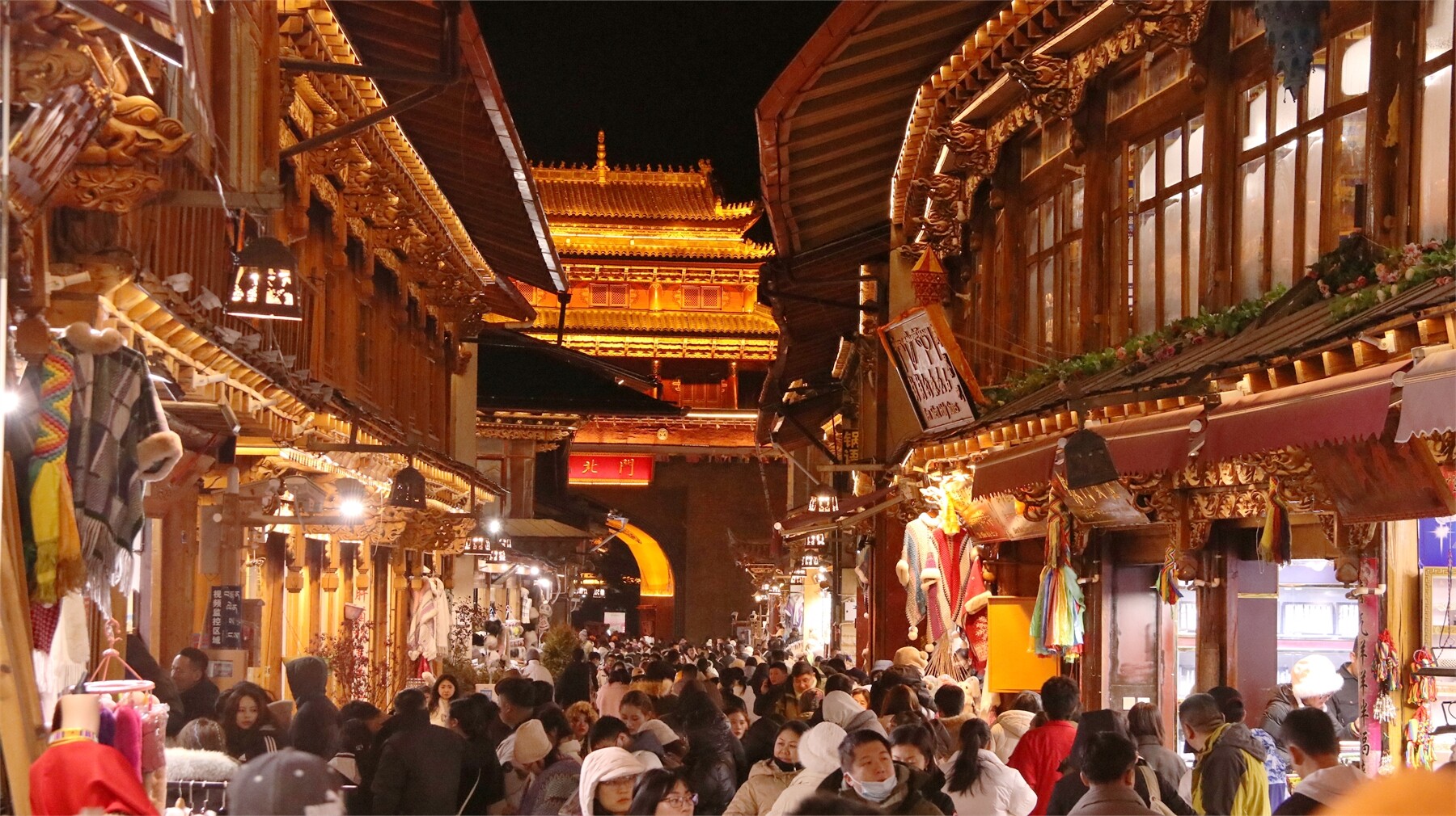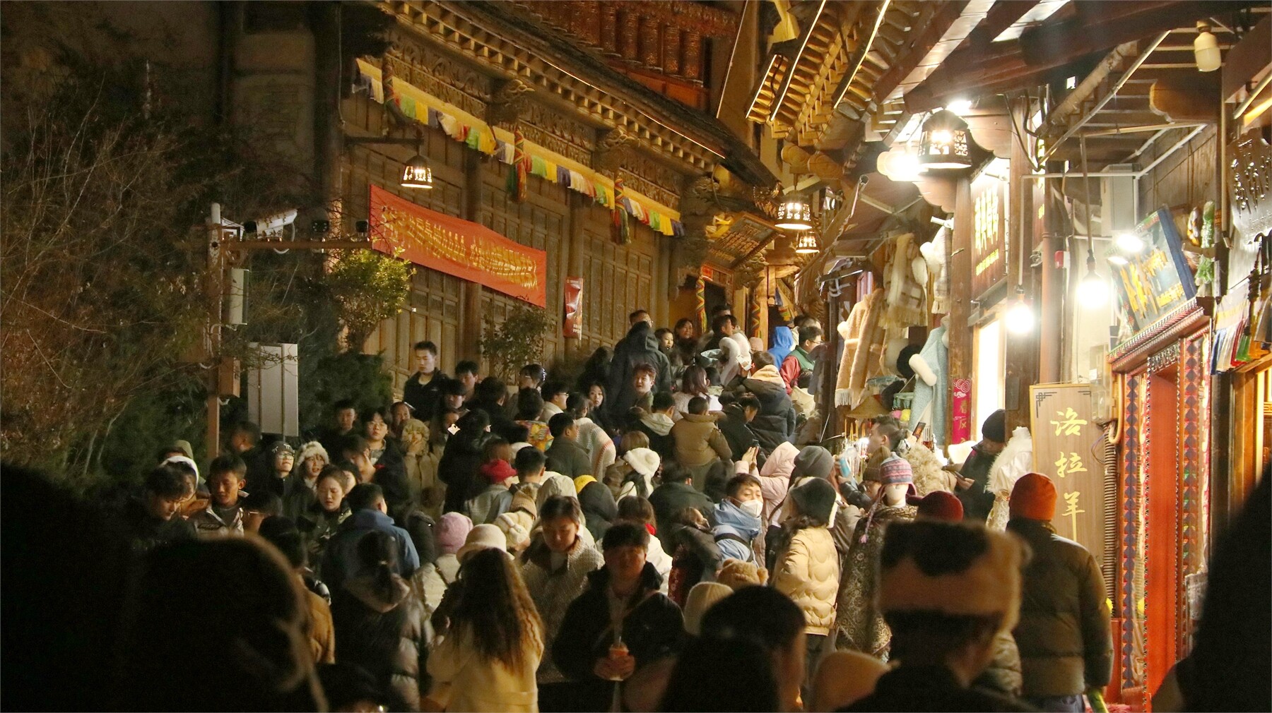 春節(jié)期間,香格里拉市獨(dú)克宗古城里來自四面八方的游客絡(luò)繹不絕。