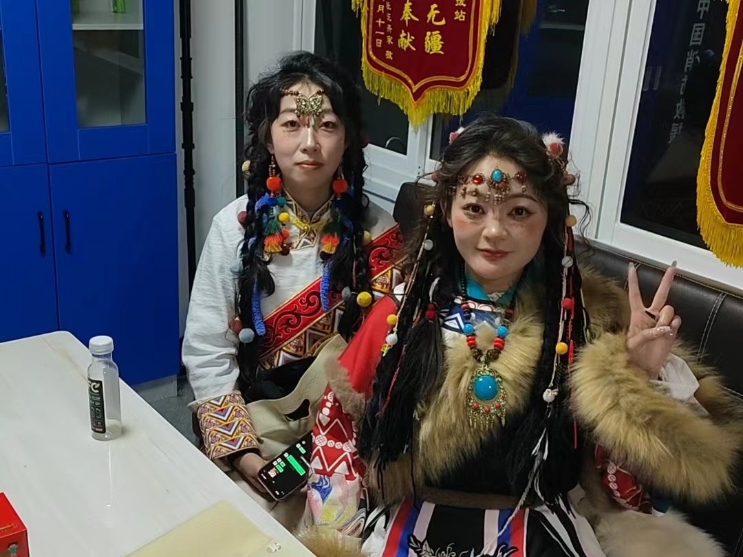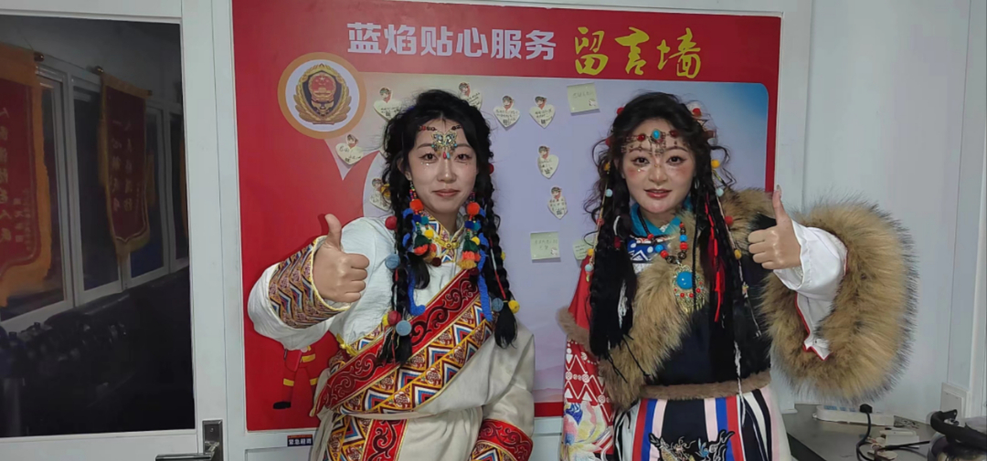 1月30日下午17時20分許,服務站迎來兩位身著藏式服裝的“卓瑪”。經(jīng)隊員了解得知,兩位“卓瑪”是外地過來旅游的,準備到寺院內(nèi)部去旅拍,手上的包實在太重了,希望可以把包寄存在服務站內(nèi)。隊員立即接過她們手中的包將其安置好,并細心問到包內(nèi)是否有貴重物品之類的,確定好包內(nèi)的物品后便向他們說道:“兩位小姐姐,你們就安心去拍攝吧,不著急,拍完后回到這里取你們的東西就可以了,我們給你們守著?!彪S后兩位來自遠方的“卓瑪”便開始了他們愉快的旅拍。其實大家都知道,這場旅拍沒有1個小時是不可能結(jié)束的,而這個點也快接近了隊員們歸隊吃晚飯的時間點了,但是隊員們沒有考慮吃飯的事,他們想的只是為素不相識的遠方朋友盡一份義務,讓他們的旅拍之行無后顧之憂。19時30分左右,兩位“卓瑪”回到了服務站,隊員隨即邀請他們坐下來休息會喝杯熱水,夜晚天氣較冷讓他們先烤會火暖一下身子再出發(fā)。