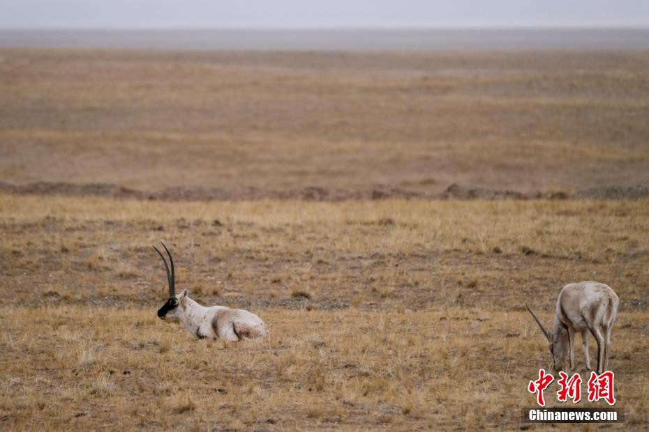 青藏公路沿線藏羚羊等野生動(dòng)物悠閑覓食