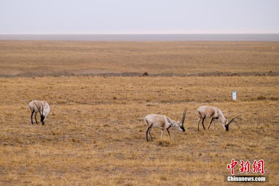 2月20日,青藏公路沿線的藏羚羊群覓食。江飛波 攝