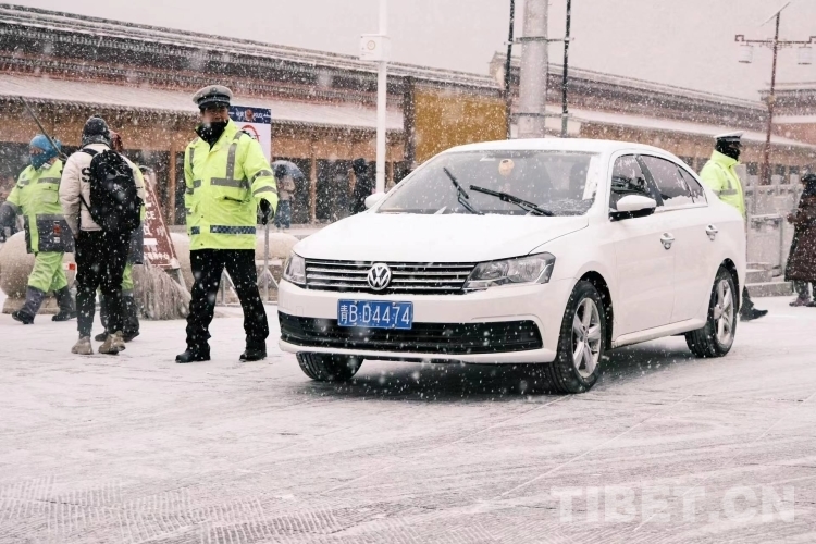 圖為交警維持現(xiàn)場交通秩序。攝影:桑吉