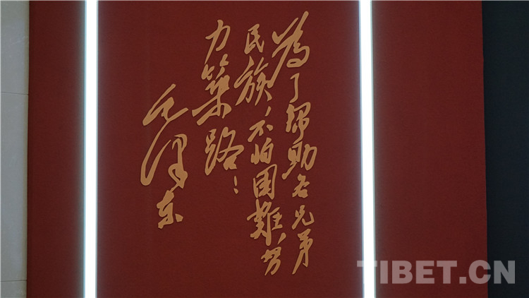 館內(nèi)序廳播放著雅康高速公路的宣傳片,兩側(cè)展板上展示的是毛主席關(guān)于修建“兩路”的重要批示,包括1952年8月為康藏公路開工題詞,和1954年12月為慶賀康藏、青藏公路通車題詞。