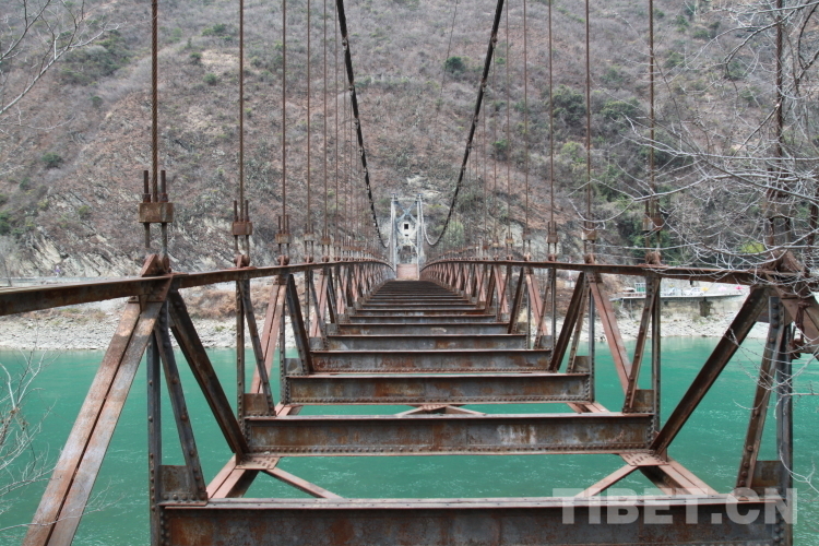 該橋始建于1950年11月。當時為了徹底解放西藏、鞏固西南邊防,中國人民解放軍第十八軍在劉伯承、鄧小平、賀龍等同志“一面進軍,一面建設(shè)”的號召下,在修筑川藏公路的同時,由西南交通部負責,廣大解放軍指戰(zhàn)員、全體技術(shù)人員和各路民工發(fā)揚不怕犧牲的革命精神,克服一切困難,修建了川藏公路上的第一座鋼索懸橋,于1951年5月底勝利完成了建橋任務(wù)。