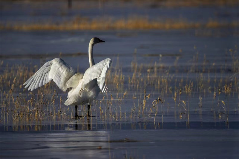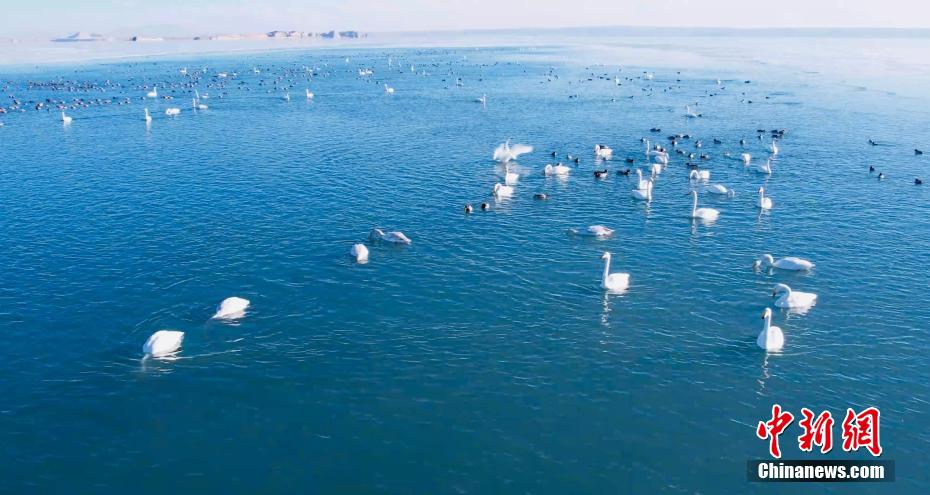 上百只天鵝飛抵柴達木盆地可魯克湖越冬