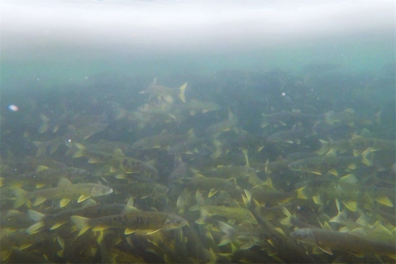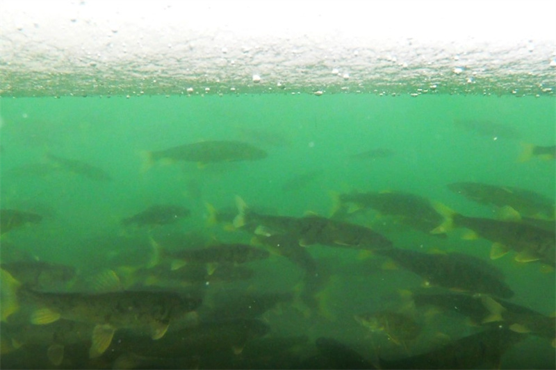 青海湖冰面下的裸鯉。張世偉 攝