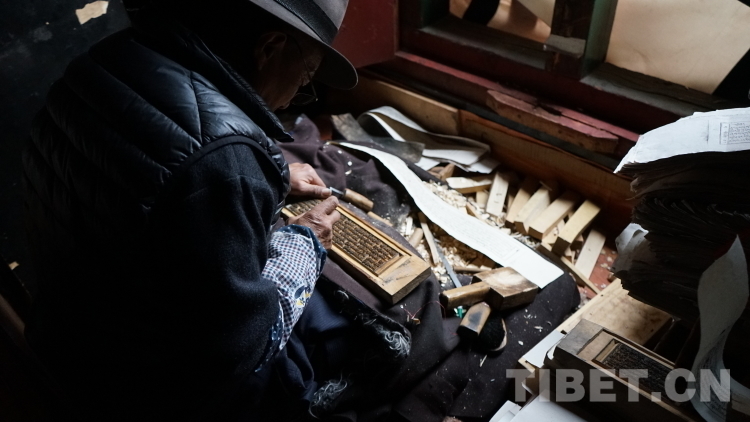 在印版制作和印刷過程中,德格印經(jīng)院亦保持著嚴(yán)謹(jǐn)認(rèn)真的態(tài)度。自建成至今,印經(jīng)院的工作場所未曾改變,且始終堅(jiān)持手工制作,而非機(jī)械化。盡管這可能會增加工作量,但是經(jīng)過幾十年的經(jīng)驗(yàn)積累,人們發(fā)現(xiàn)傳統(tǒng)手工藝制作出的印版質(zhì)量更優(yōu)。從雕刻到印刷,再到印版的維護(hù)校正,木板、紙張、墨水等全部為手工制作,整個過程充分展現(xiàn)了對傳統(tǒng)工藝的尊重和堅(jiān)守。