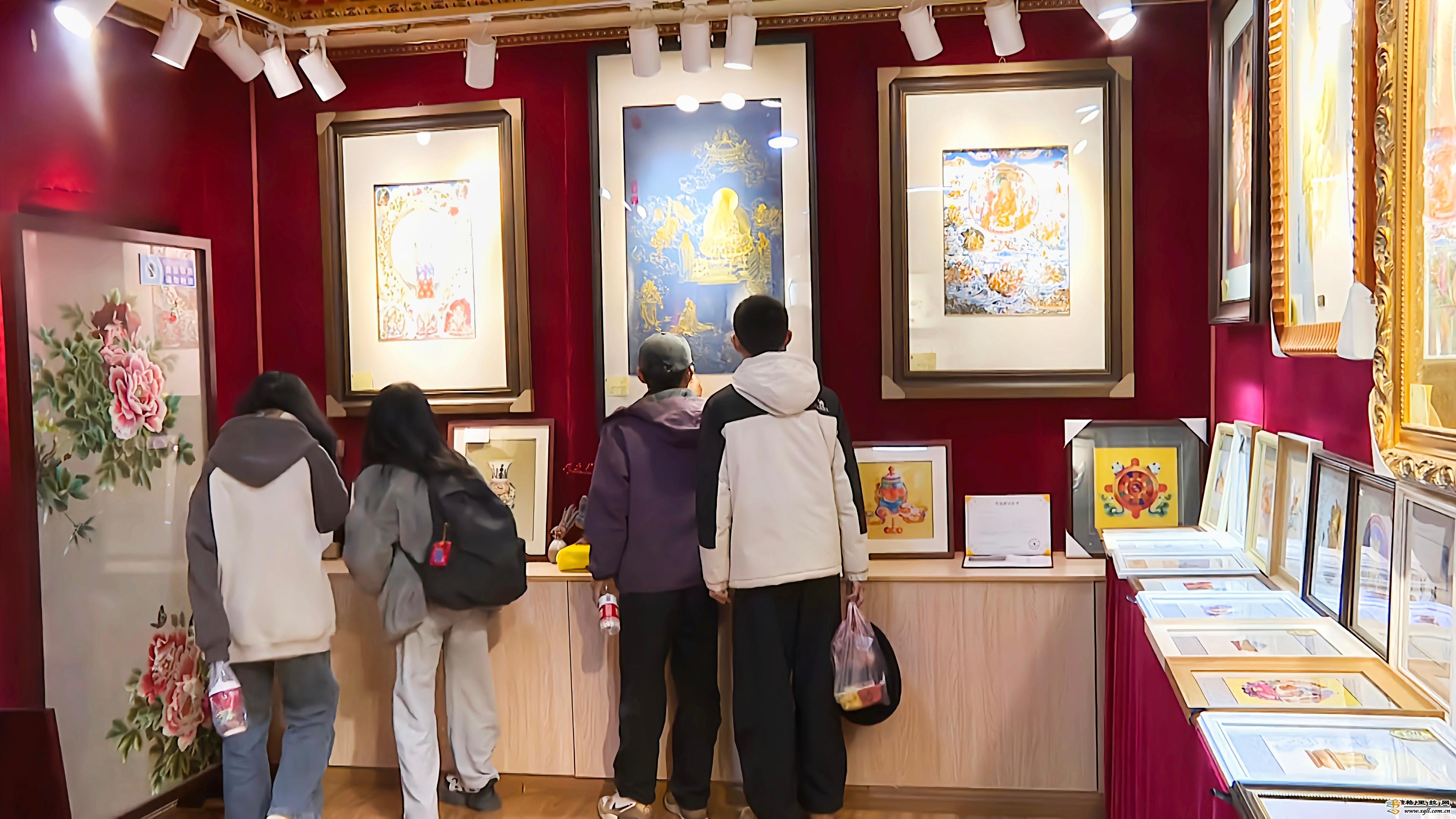 走進(jìn)位于獨(dú)克宗古城的香格里拉藏繡文化藝術(shù)院,一件件精美的手工藏繡作品陳列在展館內(nèi)。堆繡、盤金、打籽針法展示出不同風(fēng)格的藏繡手法,細(xì)韌、明亮而又富有彈性的絲線使得繡品艷麗而有光澤,吸引著南來北往的游客前來參觀。