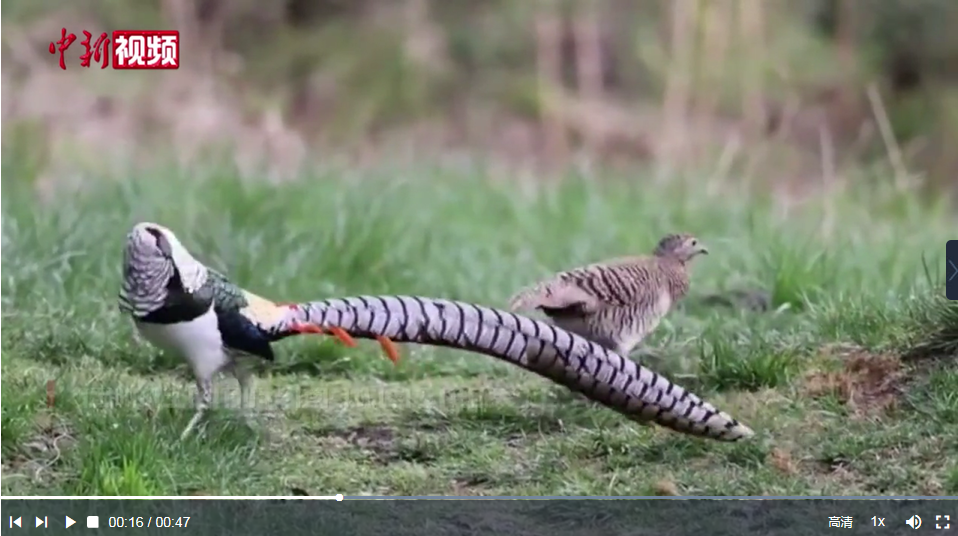 近日,有攝影愛好者在四川省甘孜州康定市二道橋村,拍攝到國家二級保護動物白腹錦雞求偶的畫面。畫面中,雄性白腹錦雞花枝招展,在雌性面前轉(zhuǎn)圈,試圖引起關(guān)注,十分有趣。(王鵬 朱任超 制作 劉世炯)