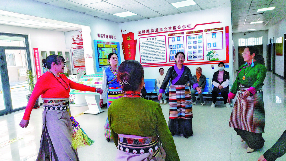 “這兩天,鍋莊舞隊排練舞蹈,準(zhǔn)備五一進行表演,你跳得那么好,下午到社區(qū)來,多參加參加集體活動。另外,我讓同事順便再幫你看看,有啥合適的技能培訓(xùn)你能參加一下,學(xué)習(xí)學(xué)習(xí)。”社區(qū)有一支由藏族同胞組建的鍋莊舞隊,平日里經(jīng)常聚在一起跳舞,面對張桂香的熱情邀請,拉巴表示很感興趣。