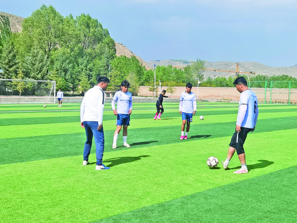 為此,黃南隊在分配宿舍和訓(xùn)練分組時,刻意將不相熟的隊員安排在一起,使他們快速熟悉,并形成默契。來自同仁市的藏族隊員南拉卡與河南蒙古族自治縣的蒙古族隊員才華加就是一對因足球結(jié)緣的好朋友,熱愛足球的兩個人,在場外有很多共同話題,到了場上經(jīng)常便用“專屬語言”相互配合?!八臋C動能力強,前后場都能踢,我作為邊鋒控球后從他的手指方向上領(lǐng)會他的意圖,就了解該怎么傳球,能有效降低失誤?!辈湃A加神秘地笑著說,這都是在平時聊天中閃現(xiàn)的靈感。