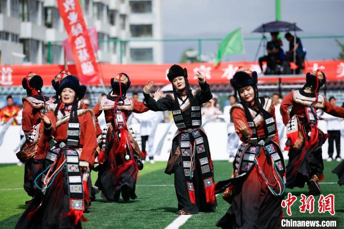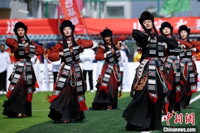 圖為演員通過舞蹈展示國(guó)家級(jí)非遺華熱藏族服飾。馬銘言 攝